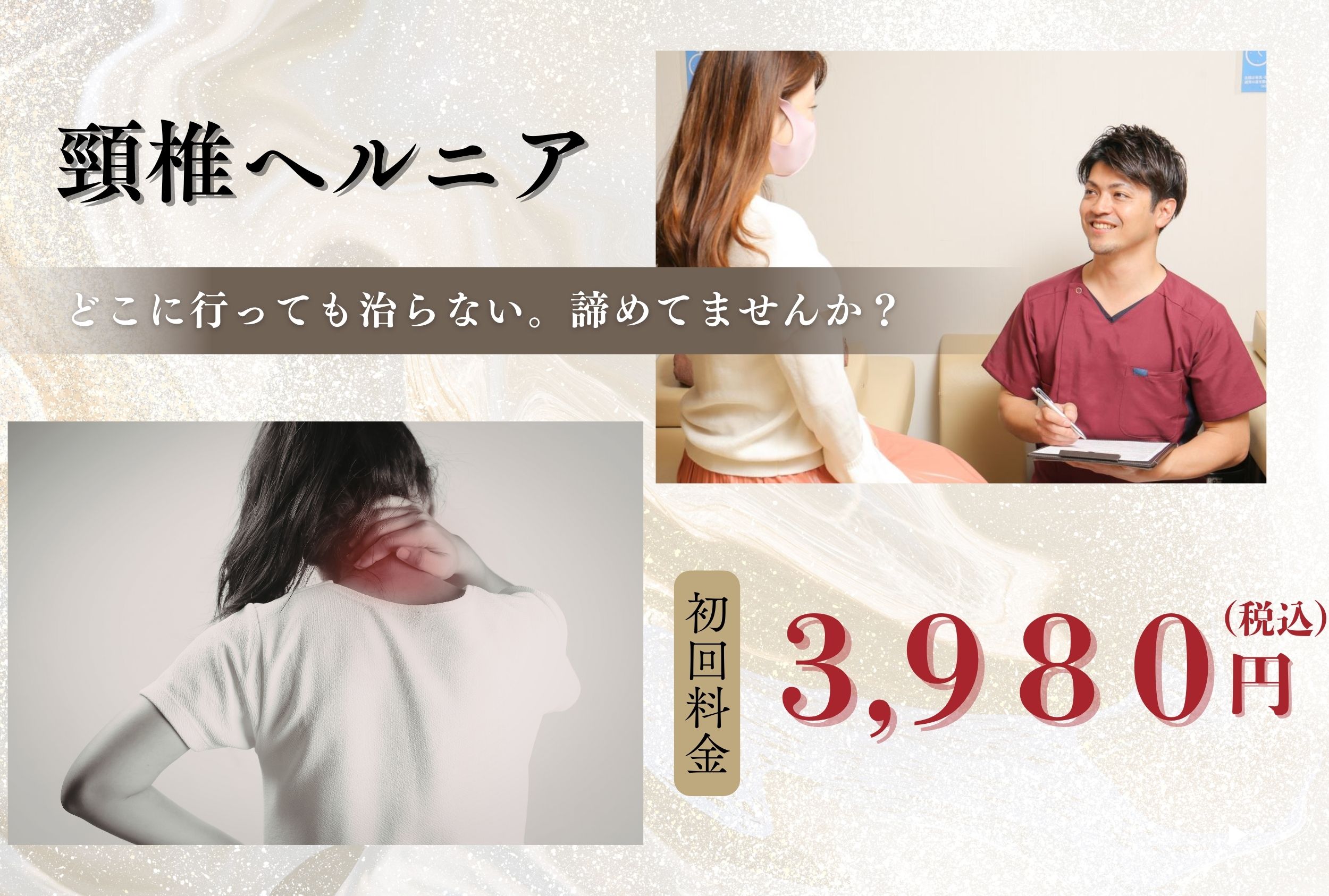 ※当院では整形外科医様のご診断により、確定診断をされている患者様や、またご来院時に整形外科的テストにより、疑いを有する患者様方にも、頸椎を無理に動かすような整体や矯正等は一切致しません。
